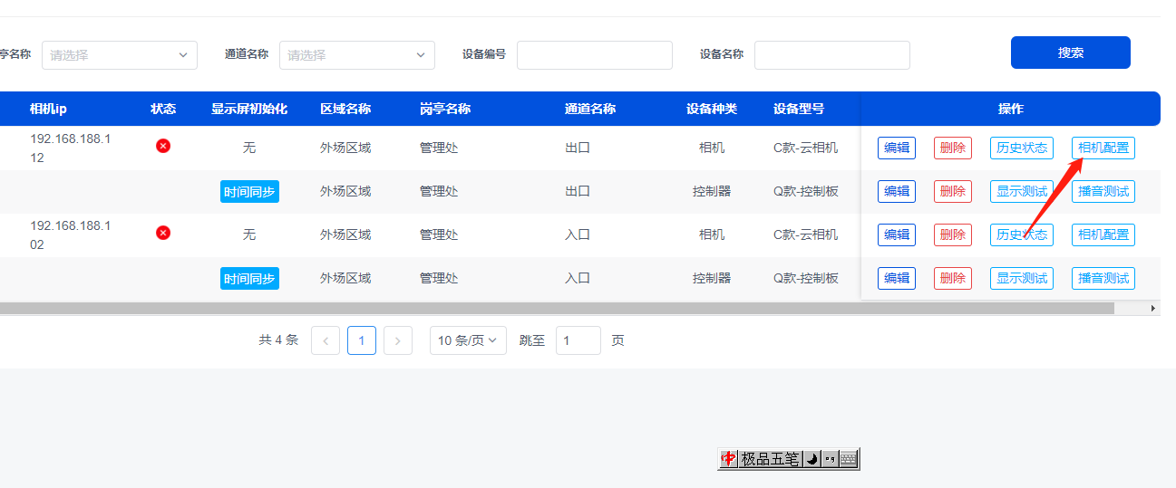 进入管理后台, 在车场管理 -》设备管理,新增或修改相机的局域网IP,序列号